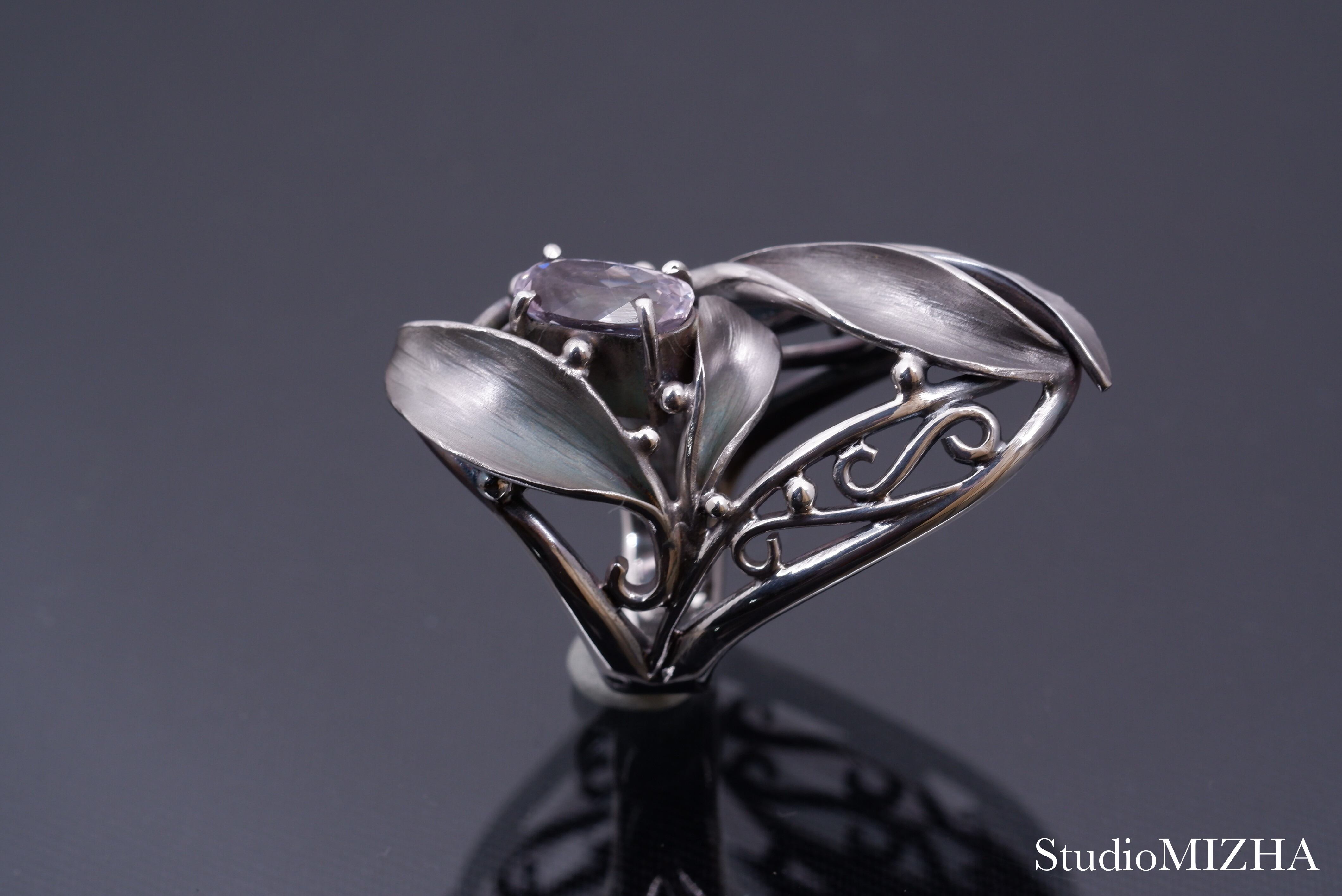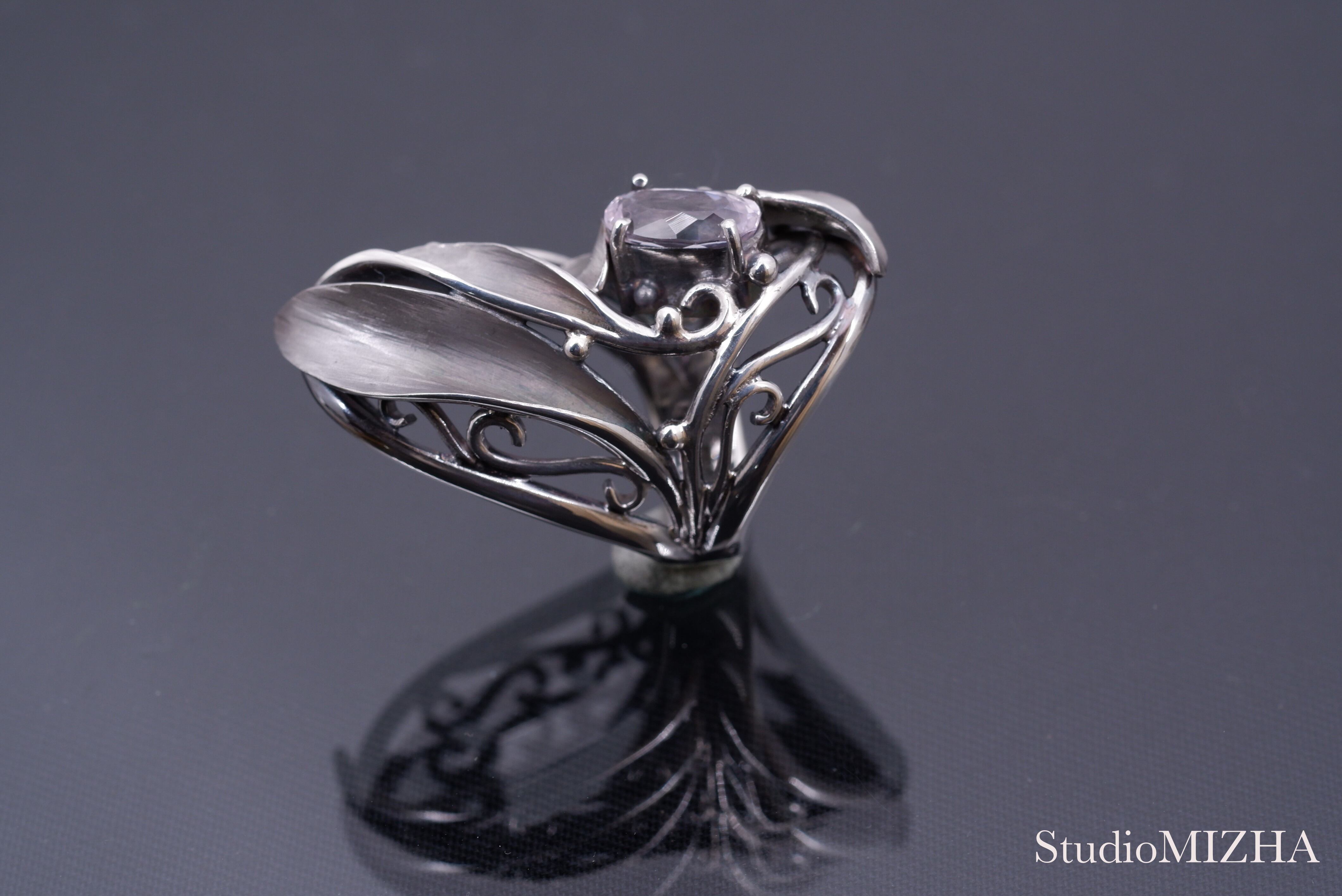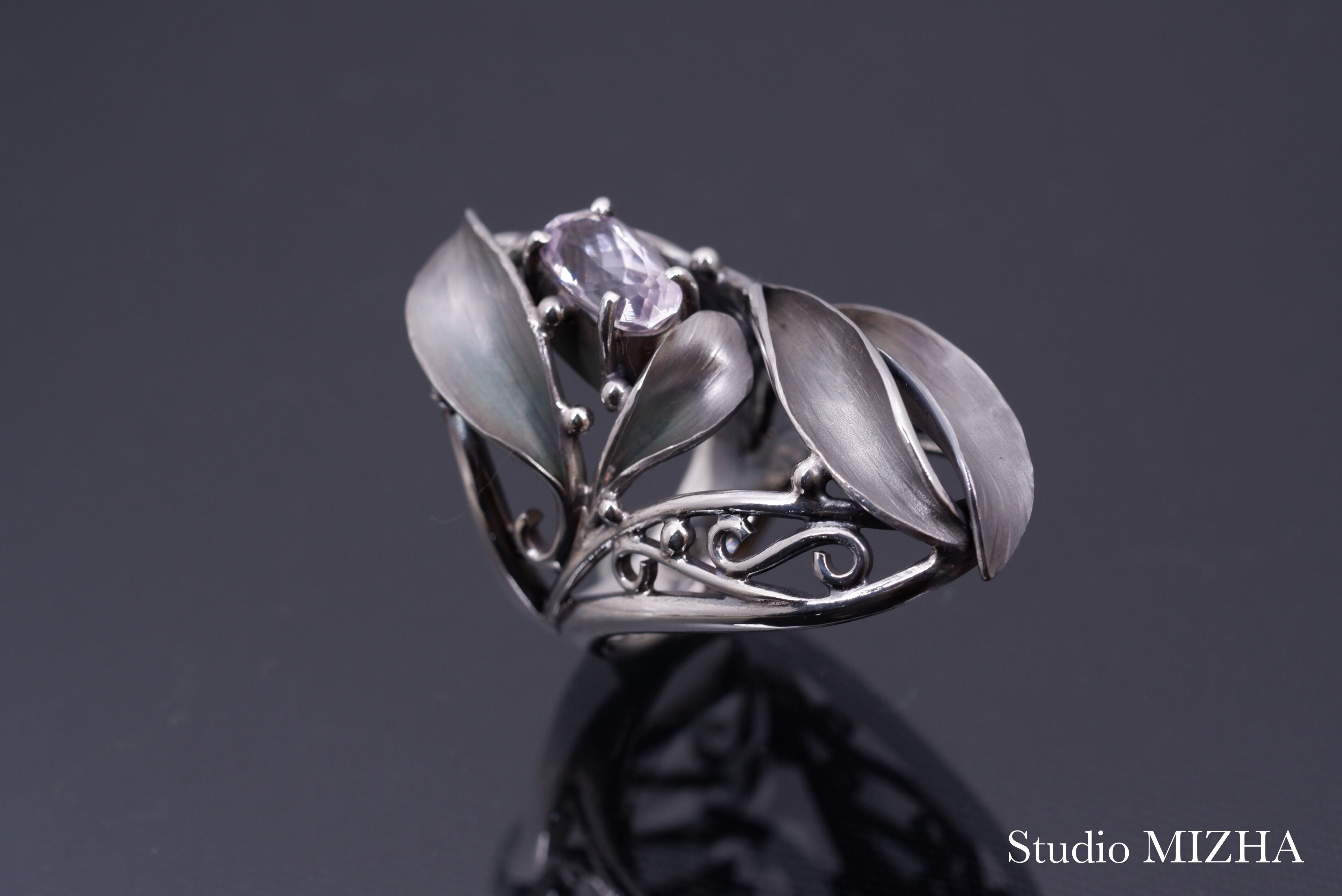 ○『草あそび』シリーズは、小さなパーツを複雑に組み合わせた作品で、一般的な型に銀を流し込んで作られる作品に比べて、大変、デリケートに創られております。