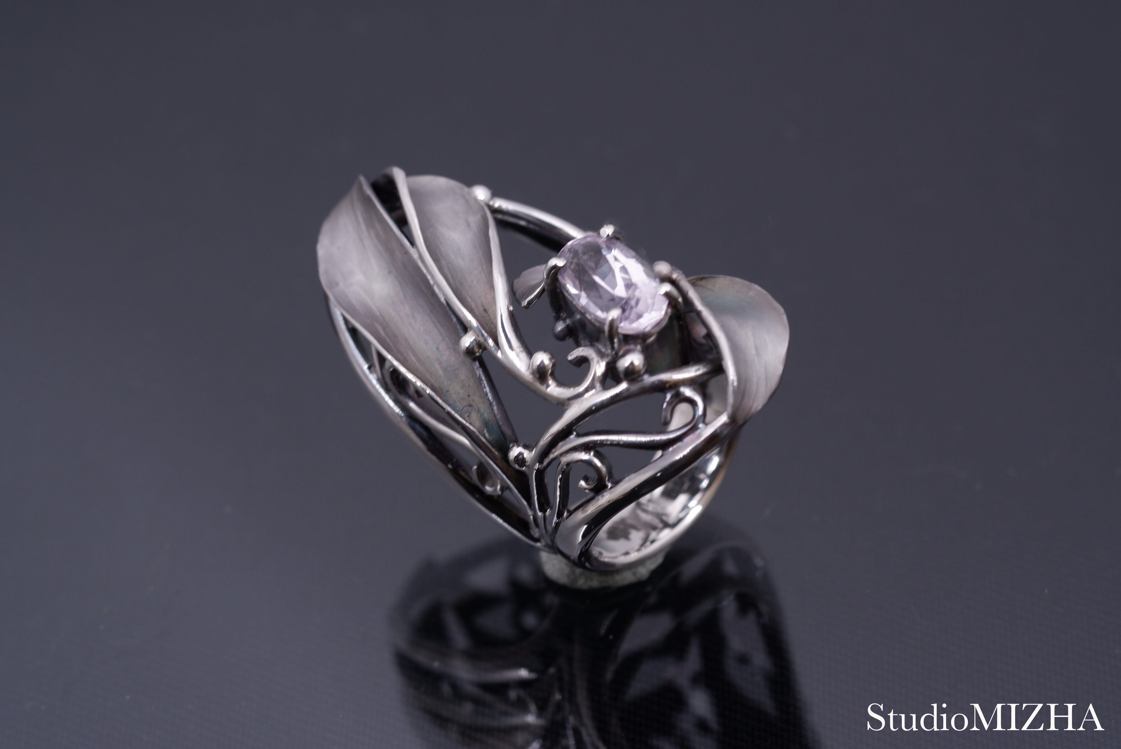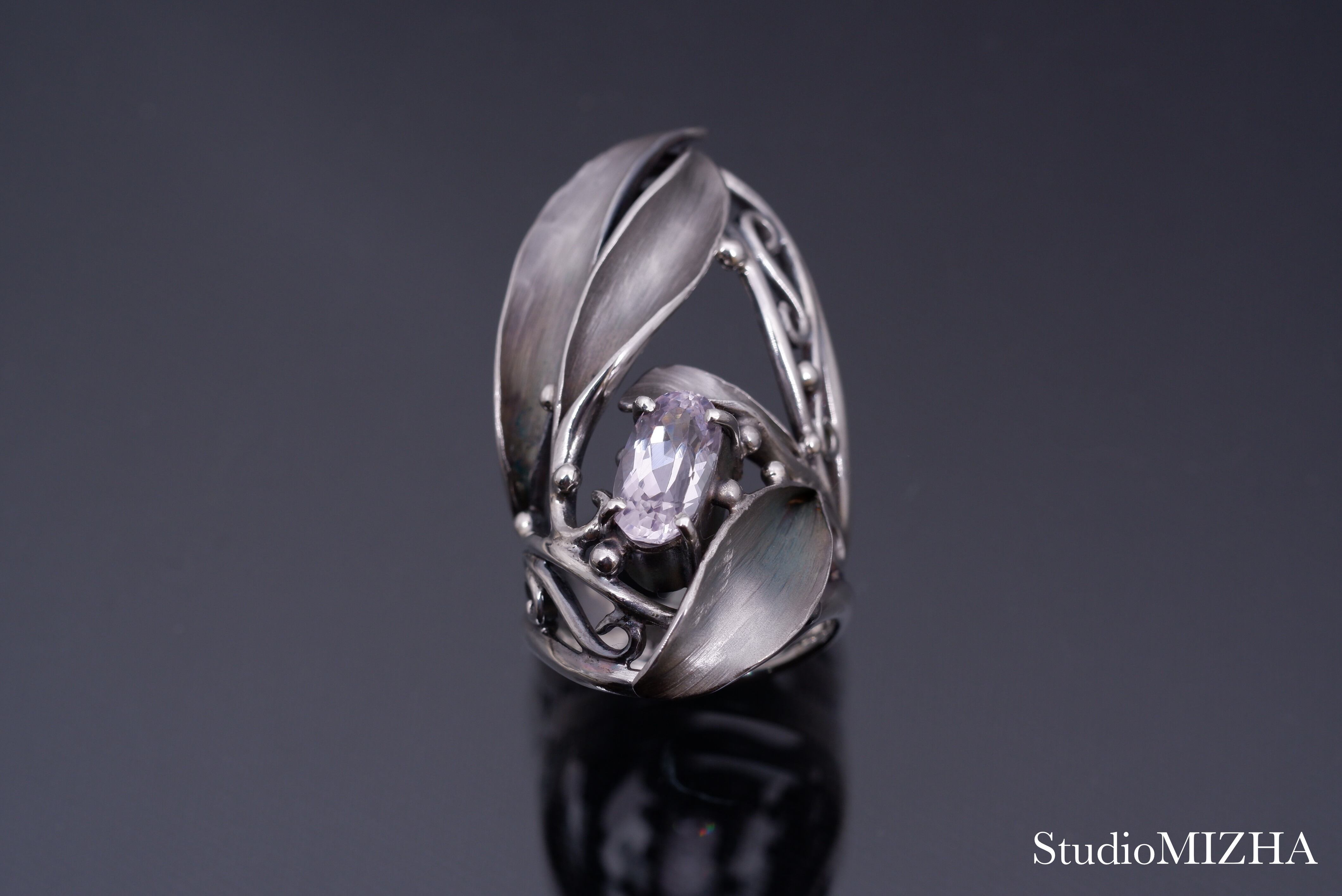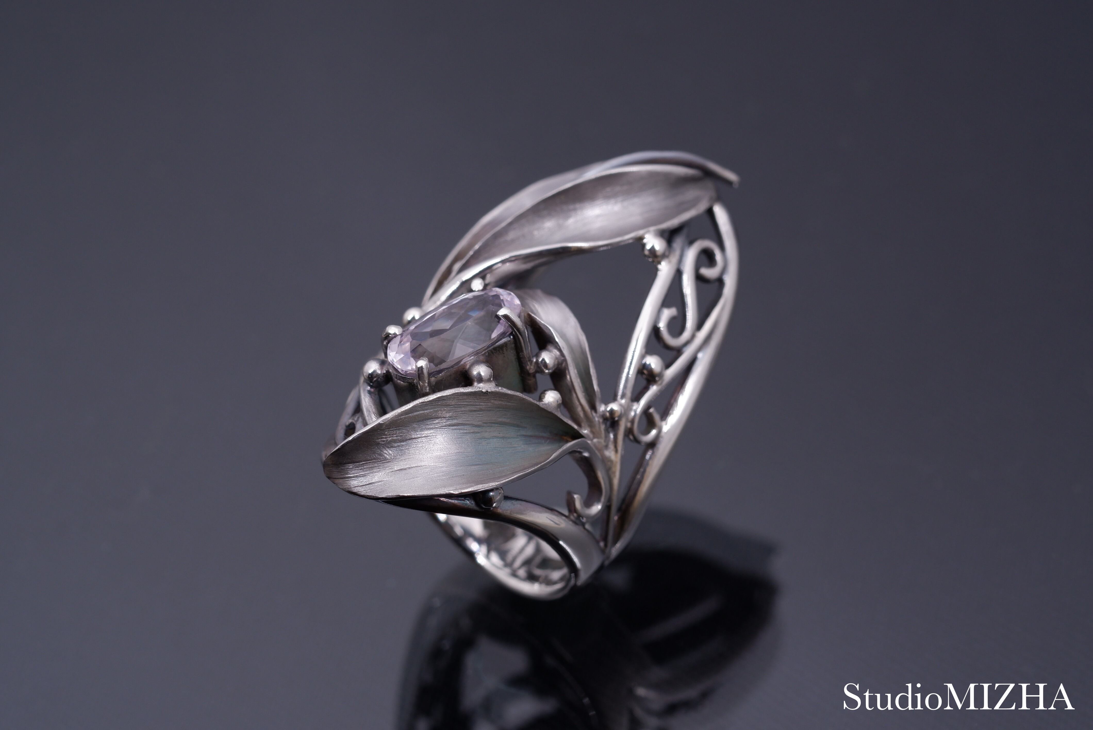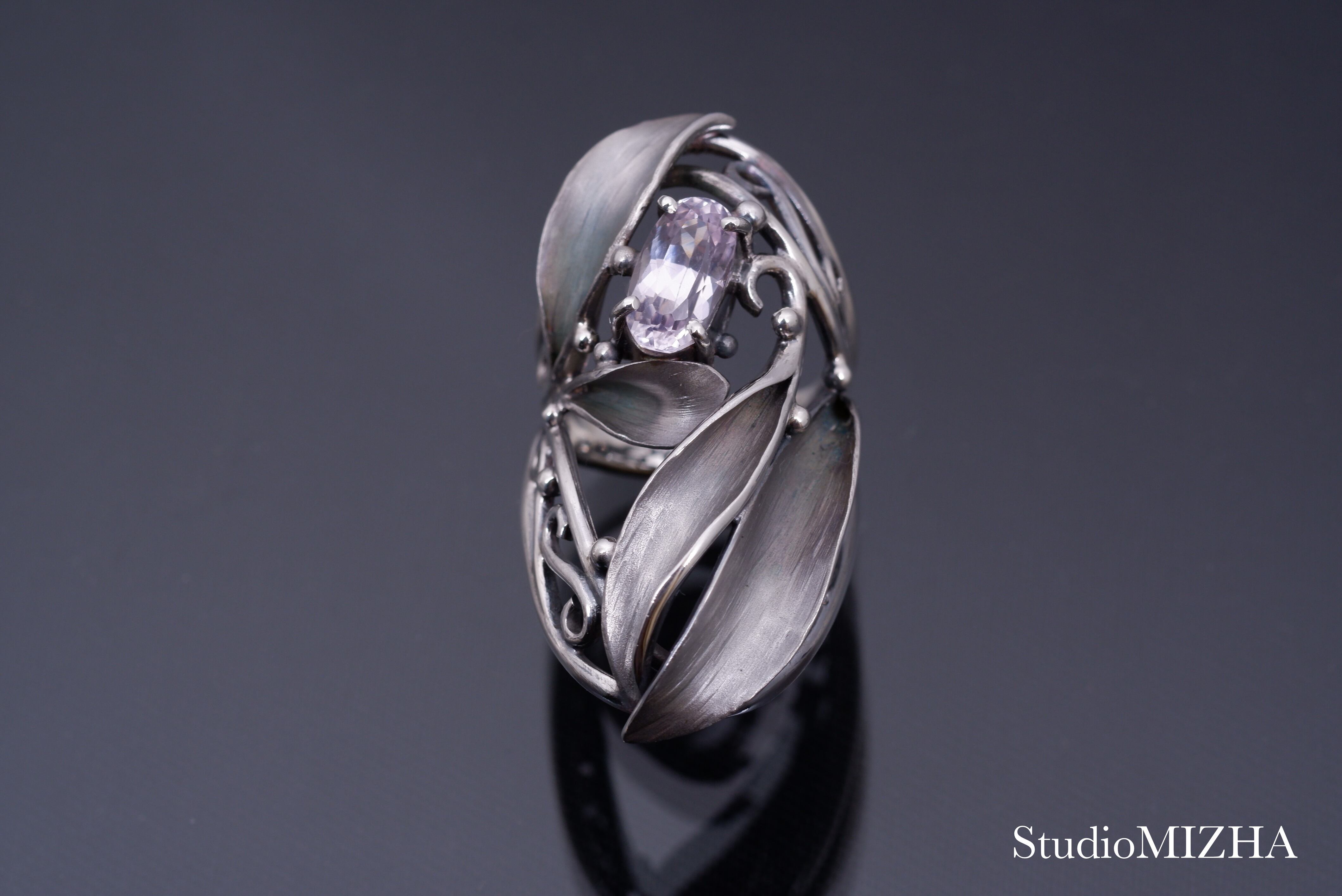 ○『草あそび』シリーズは、小さなパーツを複雑に組み合わせた作品で、一般的な型に銀を流し込んで作られる作品に比べて、大変、デリケートに創られております。
