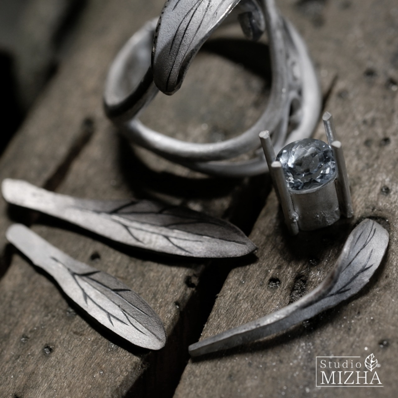 一枚一枚、銀の板から切り出し、金槌やタガネで成形した銀の葉は、野の草たちがそうであるように、全く同じカタチがの存在せず、それぞれが個性的です。